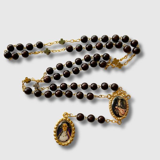 Rosario de Madera con medalla de San Benito en estuche de piel