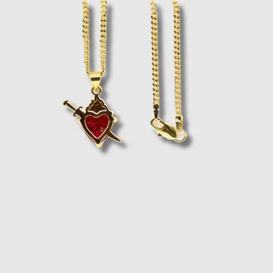 Dije Corazón Inmaculado Corazón María en cristal color rojo.