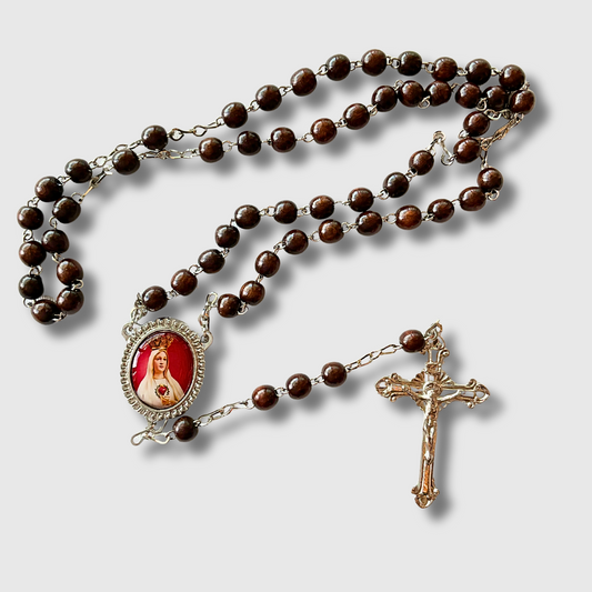 Rosario de Madera con medalla de San Benito en estuche de piel