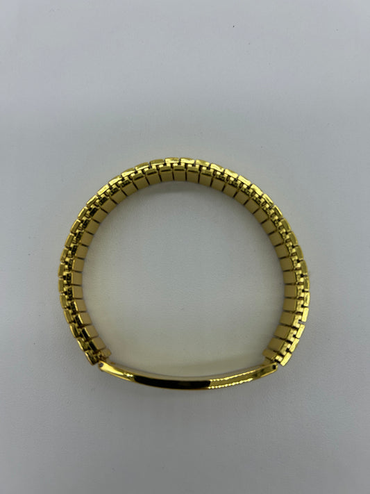 Pulsera dorada tipo reloj con Oración de San Benito